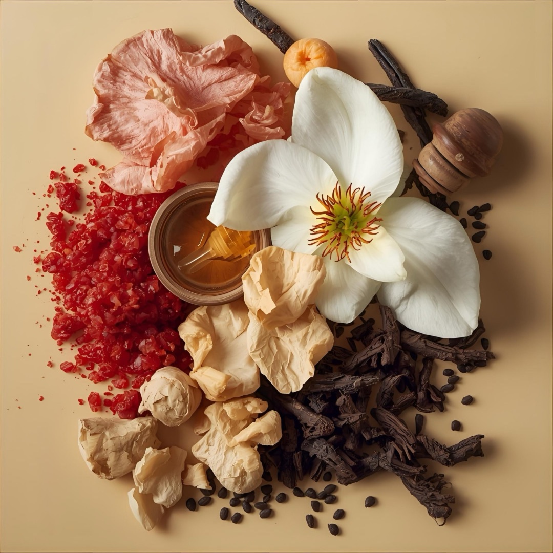 Ses notes d’encens boisé sont adoucies par le miel et ses fleurs blanches. Un parfum sombre et intense avec une touche de gourmandise pour un fini sucré.